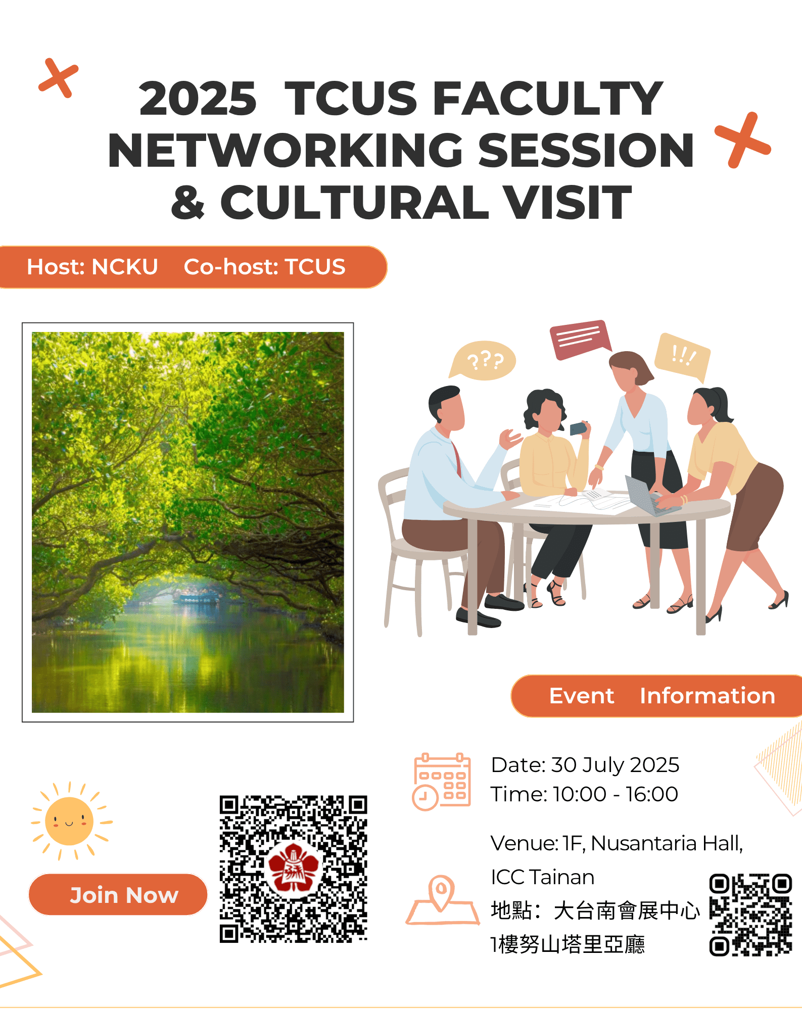 為了加強臺灣綜合大學系統(TCUS)內教師之間的交流與互動,我們誠摯邀請您參加此次活動。請事先報名以保留您的最位,並與來自四校的教師一同度過一段愉快的交流時光。